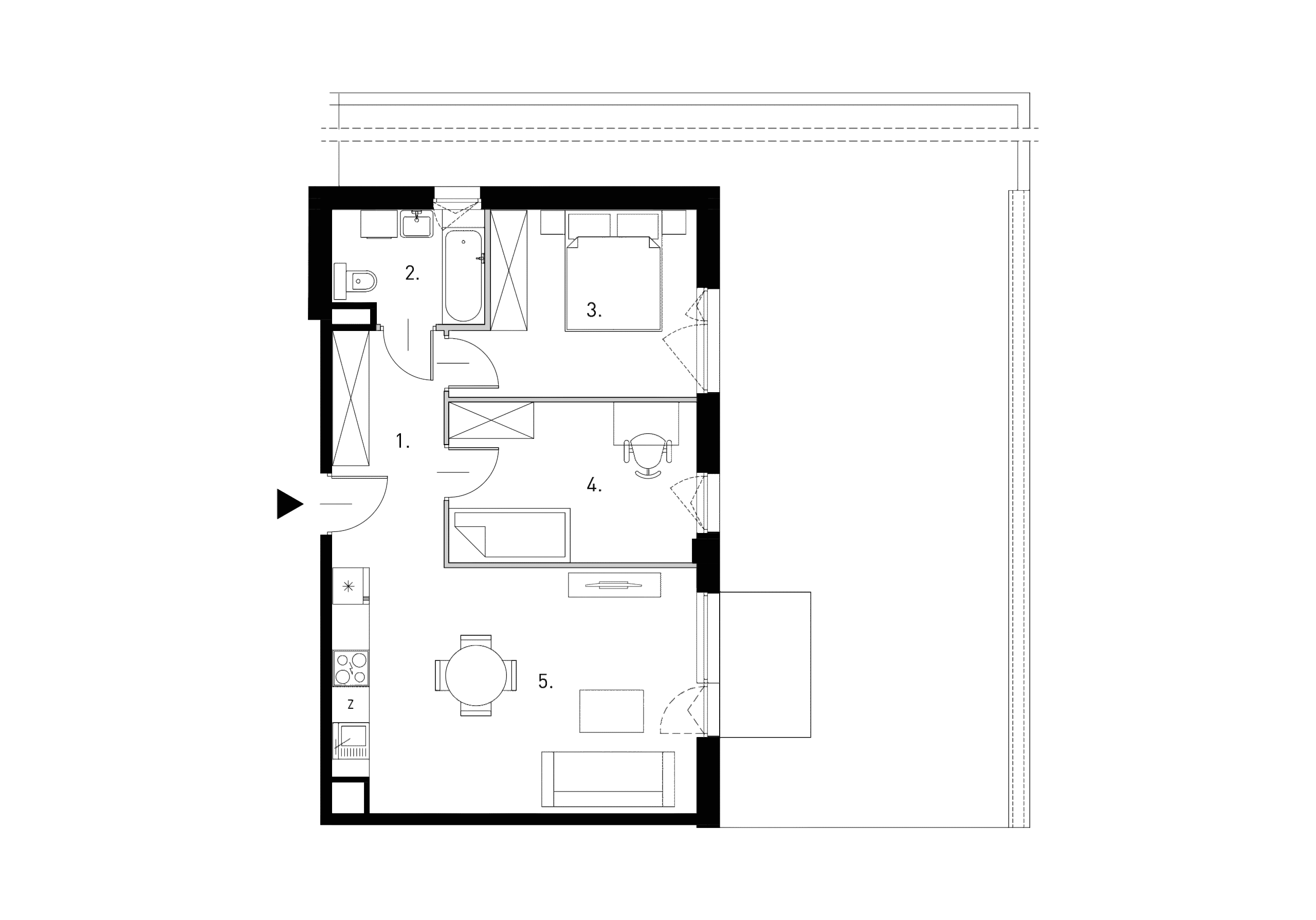 Nie doliczamy powierzchni pod ścianami do pow. użytkowej
